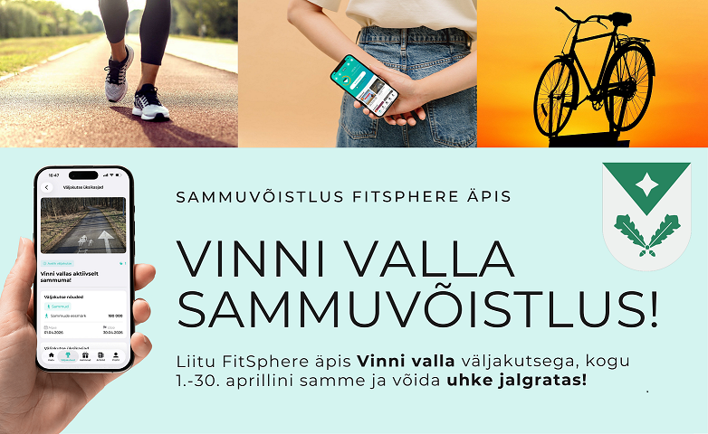 Kodumaine FitSphere äpp ja Vinni vald ühendasid oma jõud ning motiveerivad kõiki Vinni valla elanikke 1.-30.aprillini aktiivselt sammuma ning teiste valdadega mõõtu võtma!